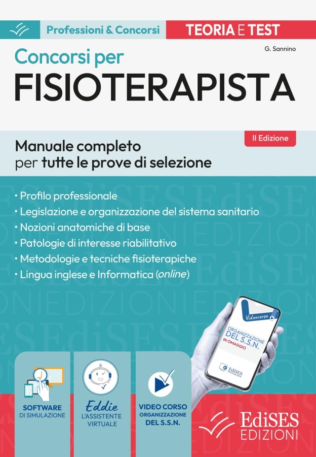 Manuale per la preparazione alle prove d'esame previste dai concorsi per Fisioterapista. Interamente a colori, ricco di illustrazioni, tabelle e schemi esplicativi, il testo fornisce le nozioni anatomiche di base delle aree corporee che interessano maggiormente il lavoro del fisioterapista, ne descrive le principali patologie e presenta le metodologie e le tecniche fisioterapiche generalmente impiegate nella pratica clinica. L'introduzione è dedicata alla professione e formazione fisioterapica e ai principi deontologici che ne sono alla base. La prima parte si occupa degli aspetti normativi della professione, con particolare riguardo al rapporto di lavoro del personale sanitario, alle responsabilità giuridiche ed etiche, all’organizzazione del Sistema sanitario nazionale. La seconda parte è incentrata sull’analisi delle strutture anatomiche e gli aspetti fisiologici del sistema nervoso e degli apparati locomotore, tegumentario, respiratorio, circolatorio, sulla descrizione delle patologie di interesse riabilitativo e sui trattamenti fisioterapici più di frequente praticati. Si delineano, inoltre, le nozioni basilari della farmacologia, le patologie disabilitanti nella popolazione anziana, alcune fra le patologie più rilevanti dell’età pediatrica, il concetto di postura e i meccanismi che regolano il sistema tonico-posturale, i vari strumenti di cui si serve l’elettroterapia e gli effetti da essi prodotti sui tessuti umani. Ciascun capitolo è completato da quesiti di verifica per un immediato riscontro delle conoscenze acquisite. La terza parte offre batterie di test tratti in gran parte da prove ufficiali di precedenti concorsi. Tra i materiali online sono disponibili un software di simulazione per esercitarsi online e il video corso di organizzazione del S.S.N.